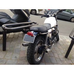 Diseño algo más compacto que el original pero misma posición: compatibilidad con bolsas laterales y accesorios Moto Guzzi.