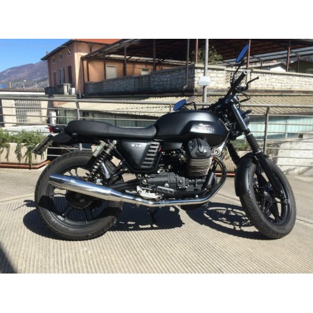 Silenciosos MISTRAL "Cygar" HOMOLOGADOS, válidos para V7 II Stone/Special y V7 Classic/Stone/Special; en acero inoxidable y acabado pulido, satinado o negro; inspirados en los diseños en forma de puro y manteniendo la estética original y el sonido Moto Guzzi.