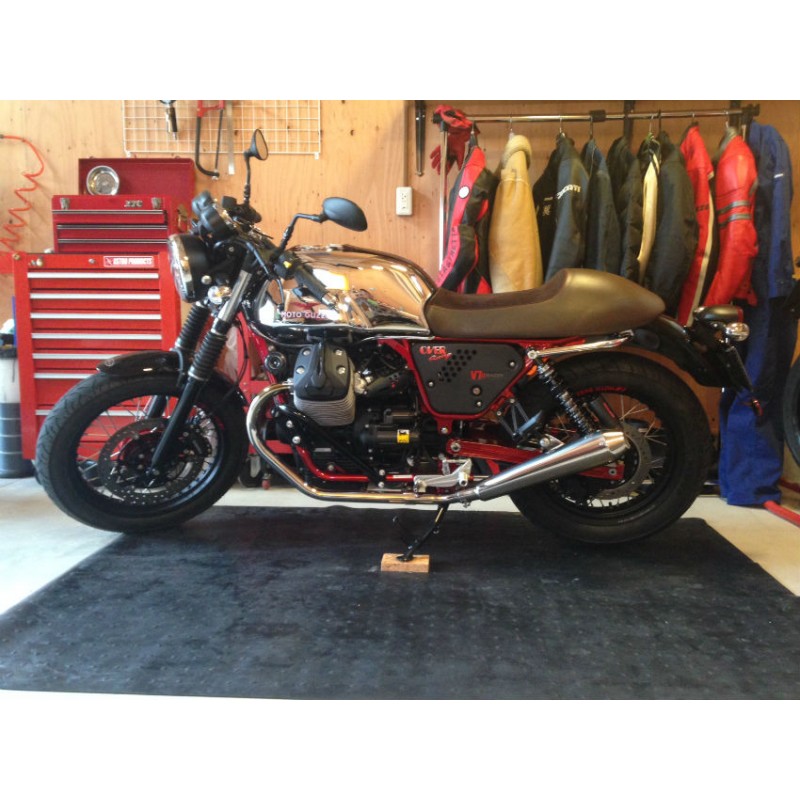 Silenciosos MISTRAL cónicos cortos HOMOLOGADOS, válidos para V7 Racer I y II; en acero inoxidable y acabado pulido o negro; mantienen la estética original y sonido Moto Guzzi en un diseño más compacto y ligero.