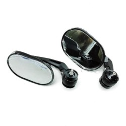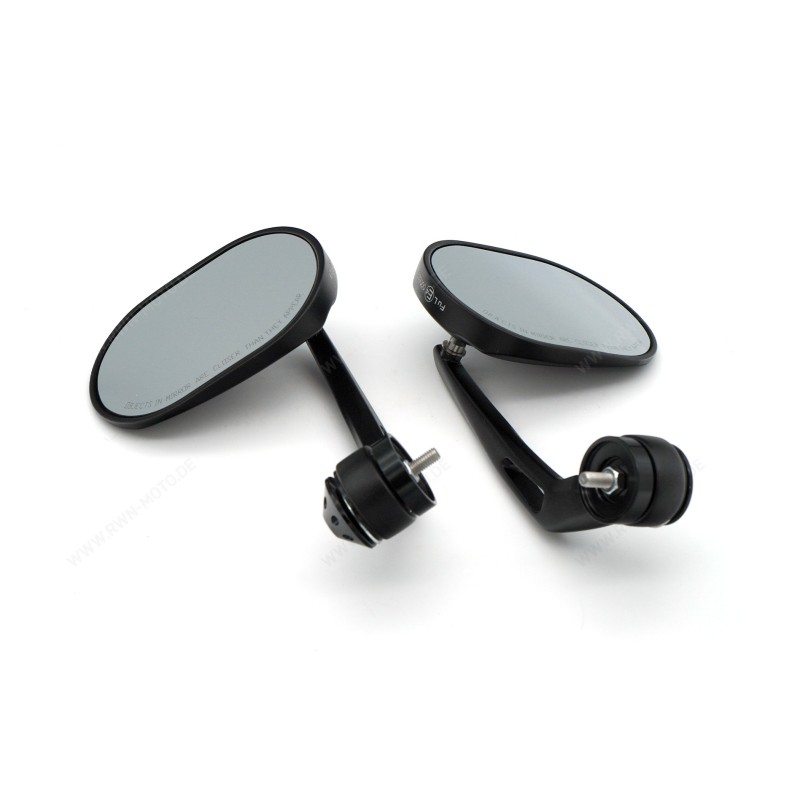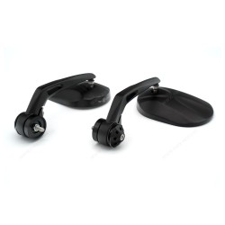 Kit espejos para montaje en los extremos del manillar. Cuerpo ovalado en aluminio y soporte en aluminio fresado. Acabado en color negro. Montados en origen en V7 850 E5 Special Edition y Corsa, se pueden montar en cualquier modelo V7, V9, California 1400, Audace etc.