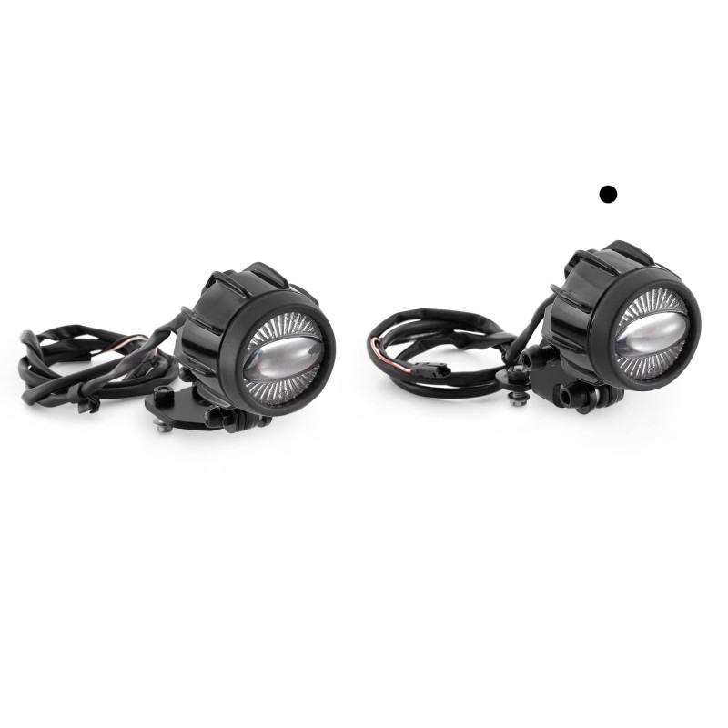 Faros antiniebla LED de bajo consumo energético, cuerpo de aluminio y reducidas dimensiones. Integran perfectamente el diseño de la moto y permiten una mayor visibilidad y seguridad al conducir de noche. Homologación europea.
